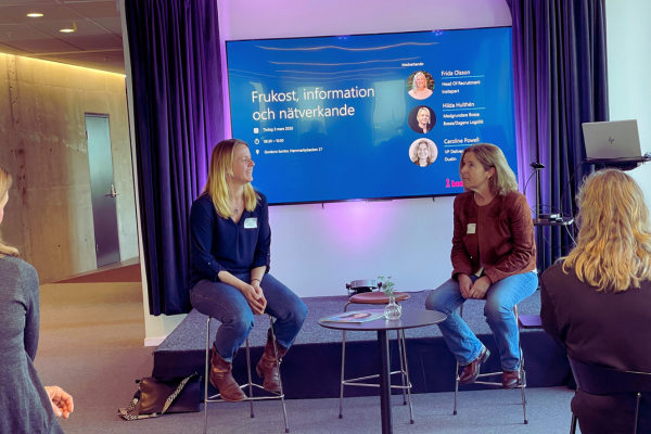 Caroline berättade om sin resa från England till Ryssland och vidare till Sverige – och hur hennes fokus med tiden har breddats från det egna expertisområdet till en större förståelse för hur trivsel på arbetsplatsen hänger ihop med engagemang, ledarskap och resultat. Karin delade med sig av sin egen karriärresa och reflekterade kring hur mentorskap kan spela en viktig roll när man vill utvecklas i sin yrkesroll.